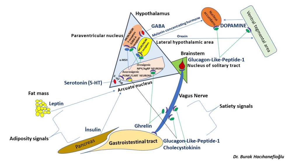 Anorexia Nervosa’ ya bağlı oluşan kilo kaybı nedeniyle beyinde hipotalamus bölgesinde bulunan jeneratörden (dinamo) GnRH hormonu salgılanması engellenmektedir (Inhibition). Bunun sonucunda hipofiz bezinden salgılanan FSH ve LH miktarlarının azalması yumurtalıklarda östrojen (estrogen) üretimini azaltarak 6 aydan daha uzun aralıklarla (secondary amenorrhea) adet kanamalarına (hypothalamic amenorhea) neden olmaktadır(119,170).